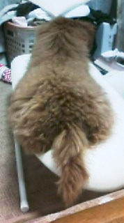 爆笑して手を休めたスキを見計らいアイロン台に乗っていた。