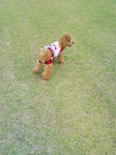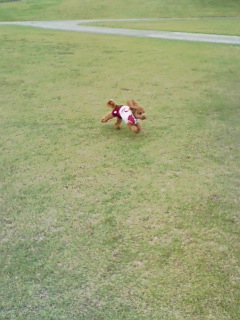 車の中で30分ほどお留守番してもらい、その後は会場横の広場で走りました